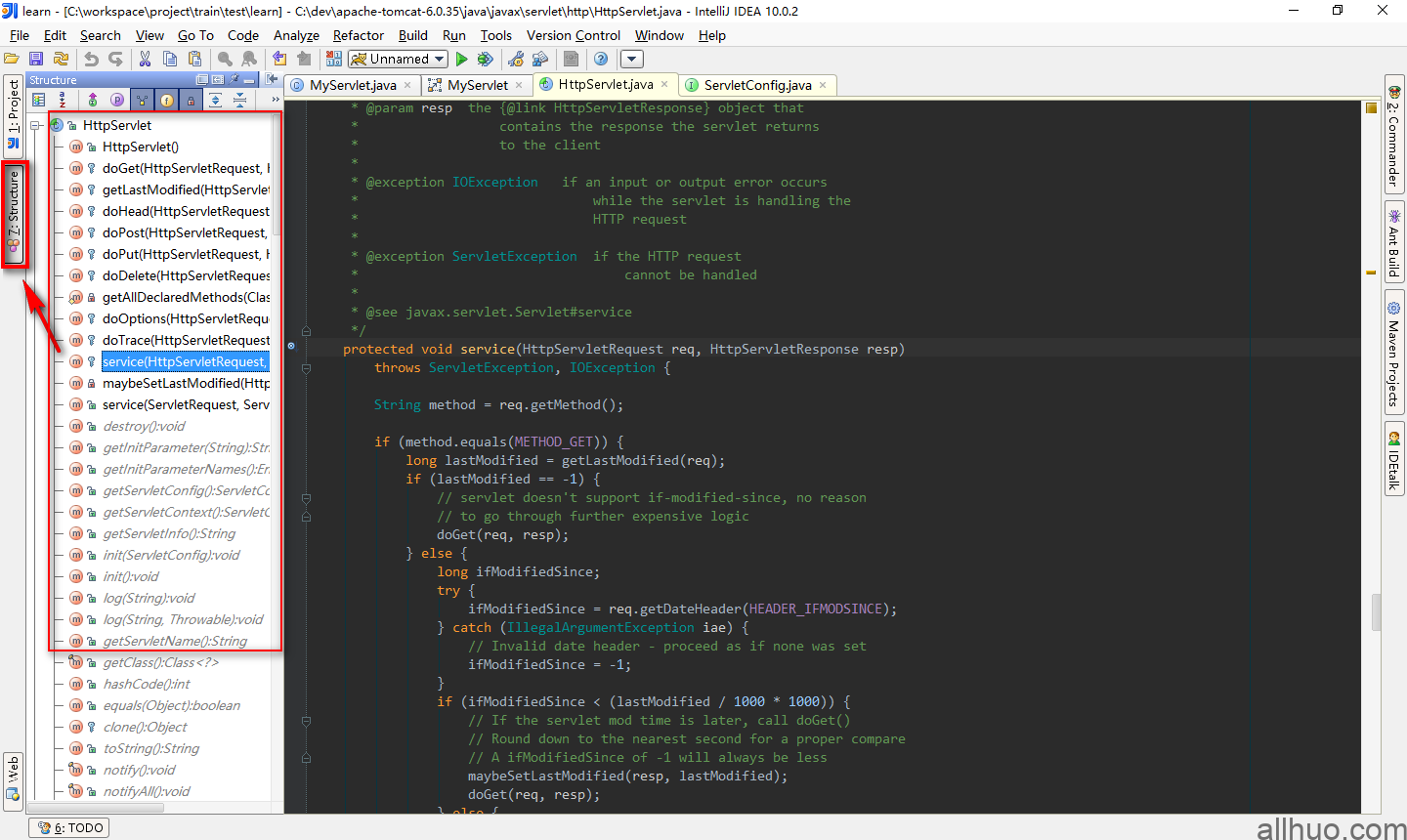 在进入某个类后,如果还想快速地查看该类的其他方法,还可以利用IDEA提供的structure功能:
